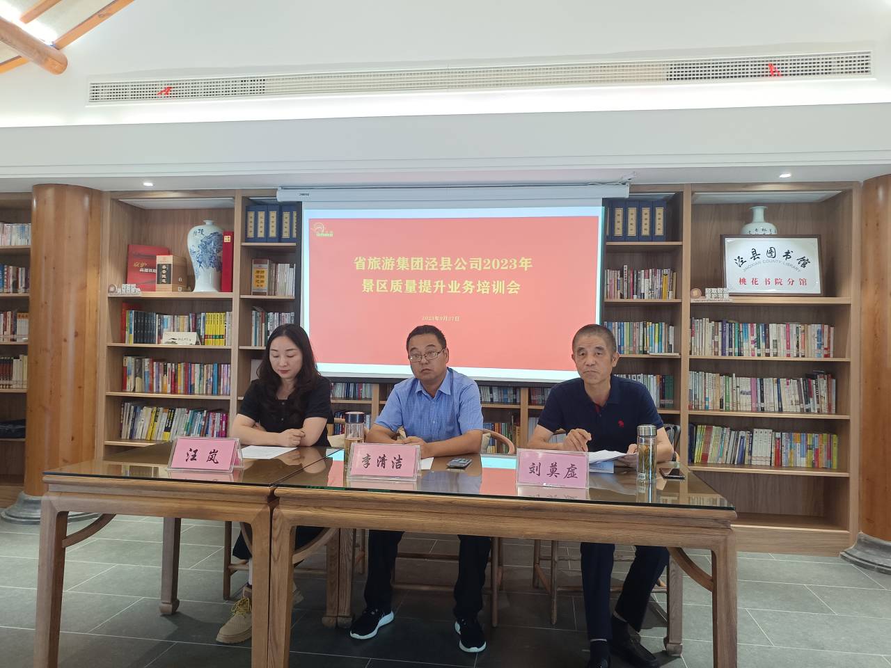 中秋月圆情谊浓,国庆阖家欢聚时。随着中秋、国庆“双节”旅游黄金周将至,为更好地迎接八方游客,展现良好的精神面貌,持续优化旅游环境,切实提升服务质量。9月27日下午,泾县公司在所属桃花书院会议室举办2023年景区质量提升业务培训会。公司党支部委员、副总经理刘莫虚主持培训会并作开班动员,综合部相关负责人及所属桃花潭景区、桃花书院全体员工参加了培训。