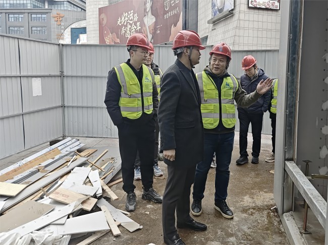 2月2日,孟玉率检查组首先赴工程公司、皖江审图公司,重点就办公场所的消防设施、应急通道、安全用电情况开展了安全检查。随后赴工程公司合肥市庐阳区创新巷5#楼改造施EPC项目现场,重点了解了施工区域围挡、警示标识设置、消防设施等安全管控措施及春节期间应急值守情况。