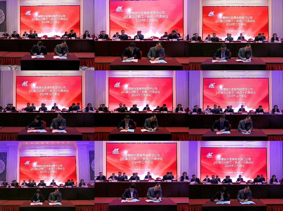 会议通报表彰了安兴发展公司2023年度先进集体和优秀员工,作为先进集体代表的萧县安兴龙城公司、合肥太阳湾老年公寓公司主要负责人及两名优秀员工代表依次在会上作交流发言。安兴发展公司总裁郑玉怀与所属企业主要负责人签订了2024年经营目标责任书和安全生产责任书。