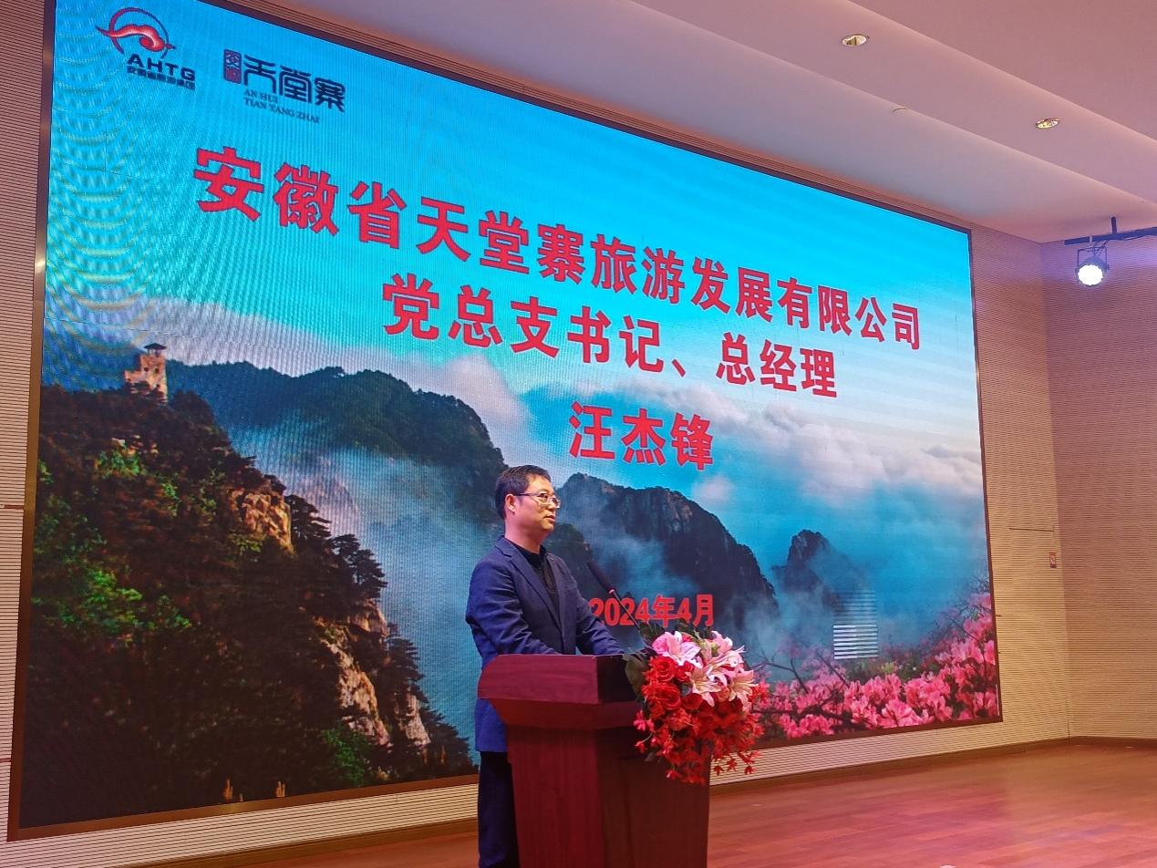 会上,安徽省天堂寨旅游发展有限公司党总支书记、总经理汪杰锋发表致辞,首先对来自全国各地的各位嘉宾表示热烈欢迎,他表示,天堂寨景区在社会各界的支持和帮助下,2023年生产经营取得历史性突破,景区高质量发展取得新成效。2024年天堂寨景区将继续强化品牌宣传、持续推出四季营销活动、提升品牌形象,希望博旅国际联盟的嘉宾们积极宣传推广天堂寨文旅资源,设计出爆款产品推向市场, 再接再厉推动高质量发展取得新成效。