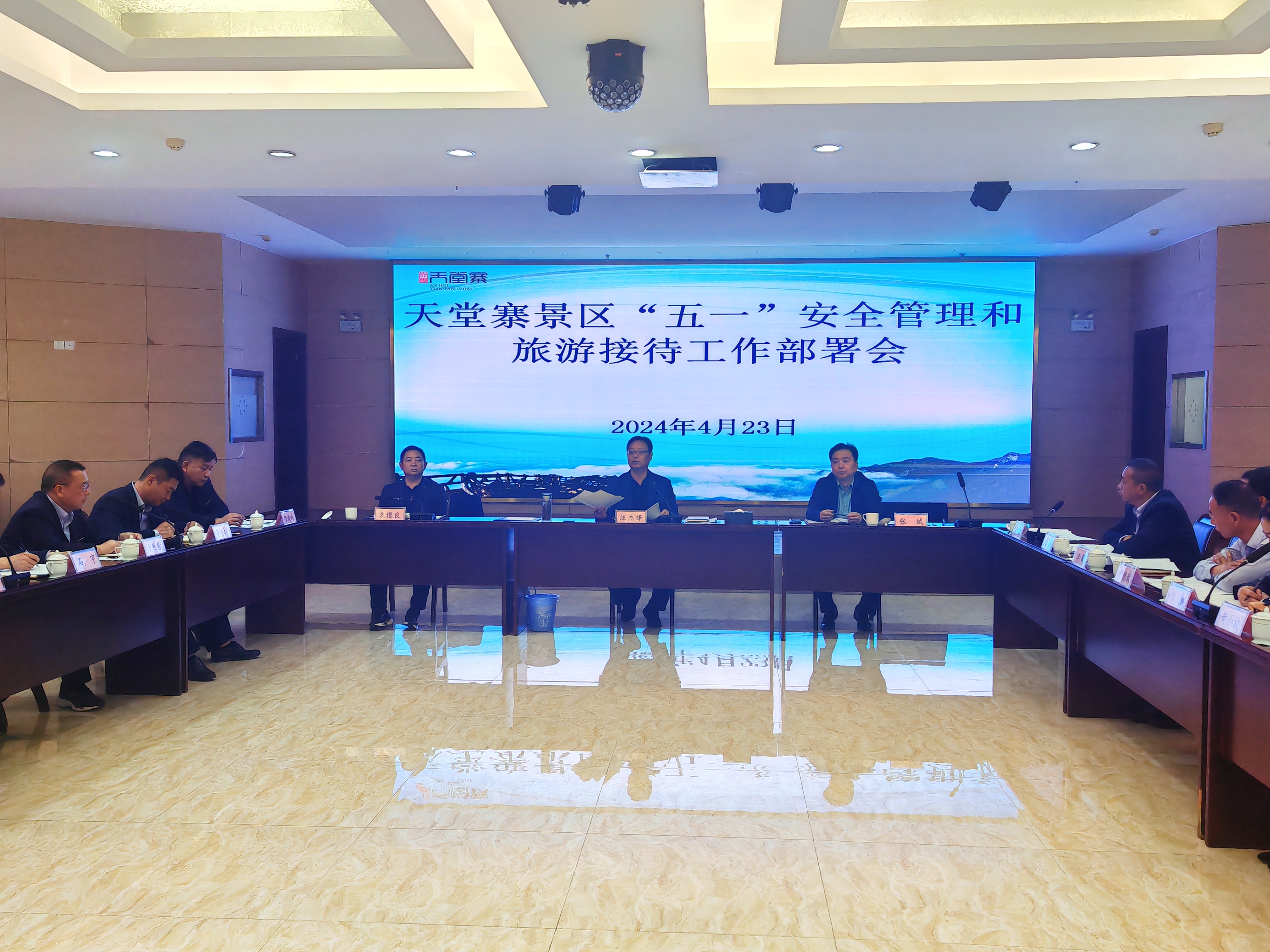 为切实做好“五一”小长假旅游接待工作,2024年4月23日上午,天堂寨公司组织召开 “五一”安全管理和旅游接待工作部署会。会议由公司党总支书记、总经理汪杰锋主持,公司领导班子成员,各分公司、公司各部门管理人员等30余人参加会议。