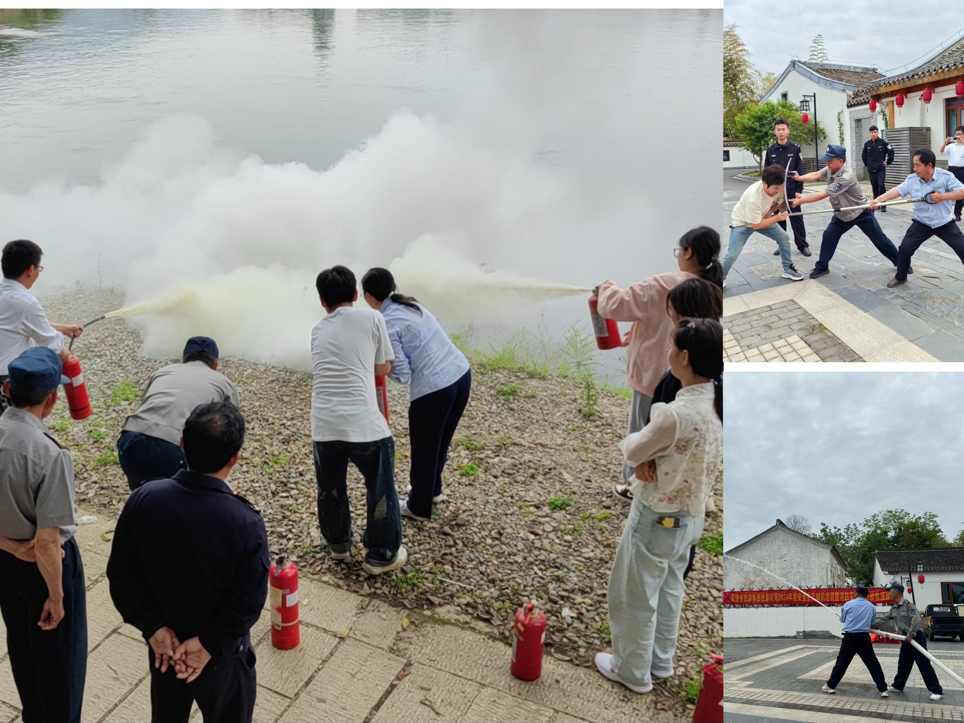 第一阶段培训由泾县消防救援大队专职消防人员讲授了景区安全生产暨消防安全应急疏散等方面的知识,随后在户外组织开展了反恐反暴、正确使用消防灭火器材、模拟突发火灾应急疏散演习。授课和演习均取得了预期的效果。