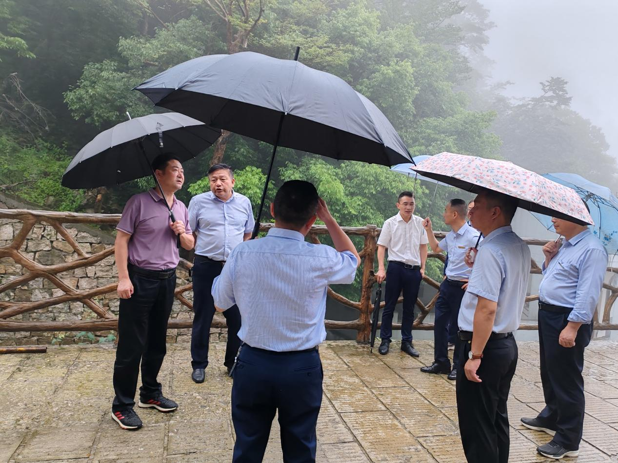 7月2日,省旅游集团党委委员、副总经理顾建华一行来天堂寨景区检查指导汛期安全生产工作,天堂寨公司经营班子,相关部门负责人陪同检查。