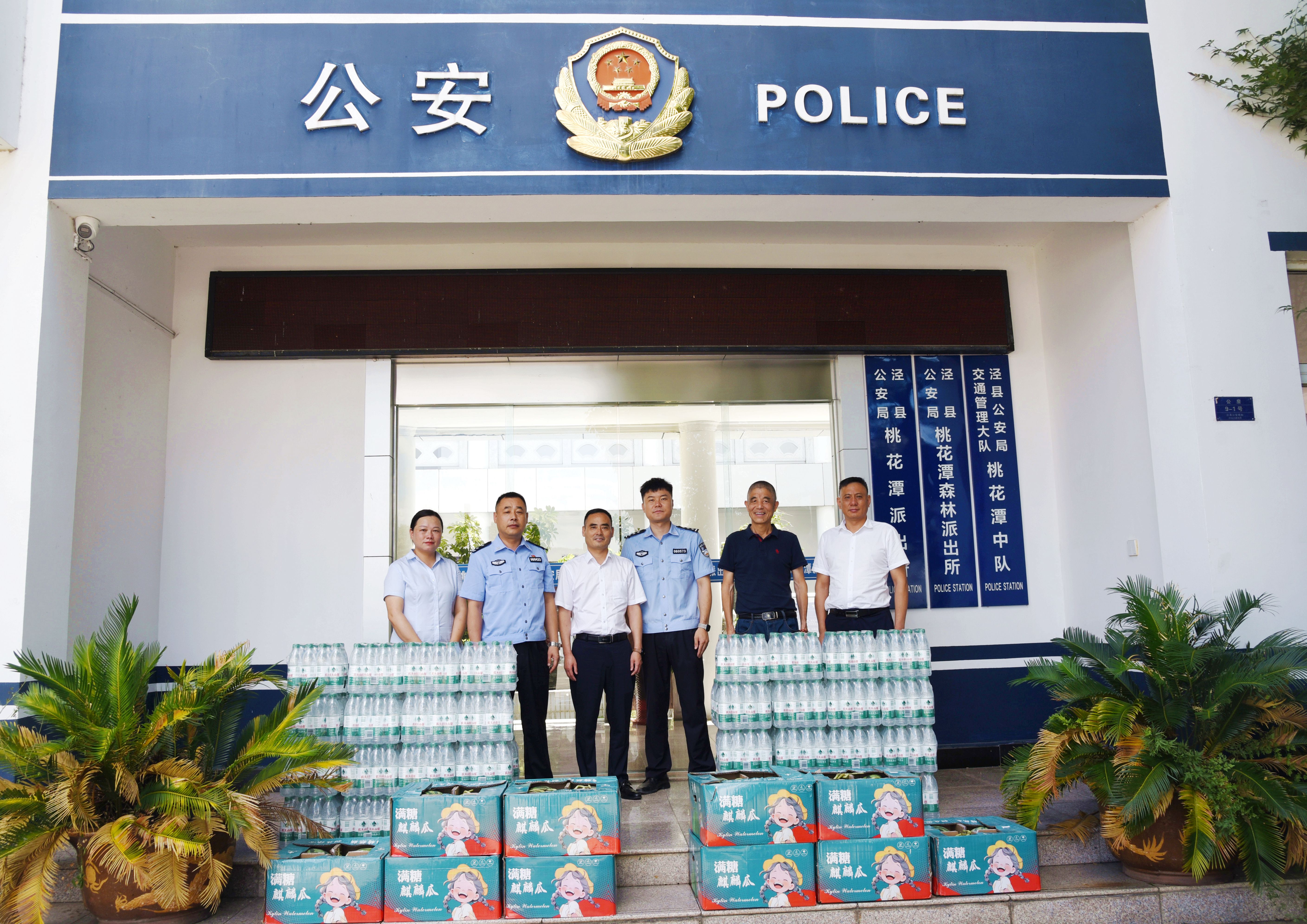 8月1日上午,泾县公司党支部书记、总经理马政率经营班子成员及工会负责人,先后赴景区驻地榔桥镇、桃花潭镇派出所及交警中队开展“夏送清凉”慰问活动,对坚守在一线工作岗位的公安干警表示诚挚的问候,对多年来坚持为企业发展保驾护航表示由衷的感谢。