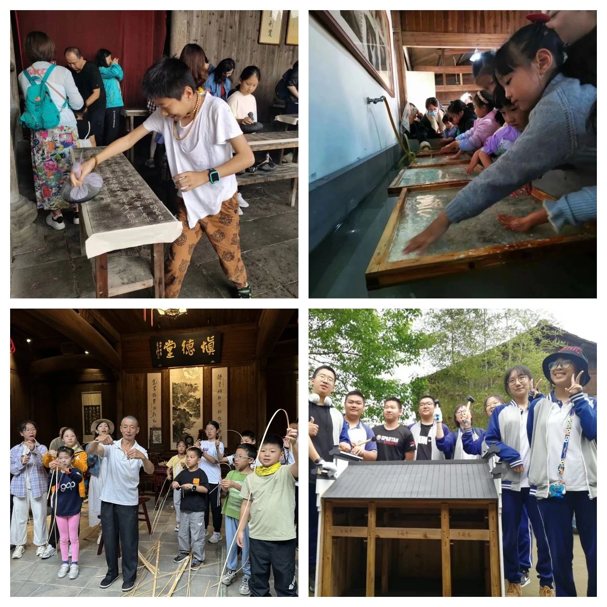唐模景区以践行陶行知“生活教育”理论为出发点,挖掘徽州文化厚重的课程资源,整合推出“碑刻拓片”“徽州竹编”“古建搭建”“宣纸制作”等主题研学产品。同时利用周边茶园、盆景园等活动基地,围绕“劳动教育+研学旅行”实践,开展实景教学、乡情民俗、素质拓展等富有针对性的研学体验活动。在这里,孩子们不仅可以深入领略徽文化魅力,拓展视野、增长见识,培养创新精神和实践能力,更能够激发他们热爱传统文化的情感与责任担当。