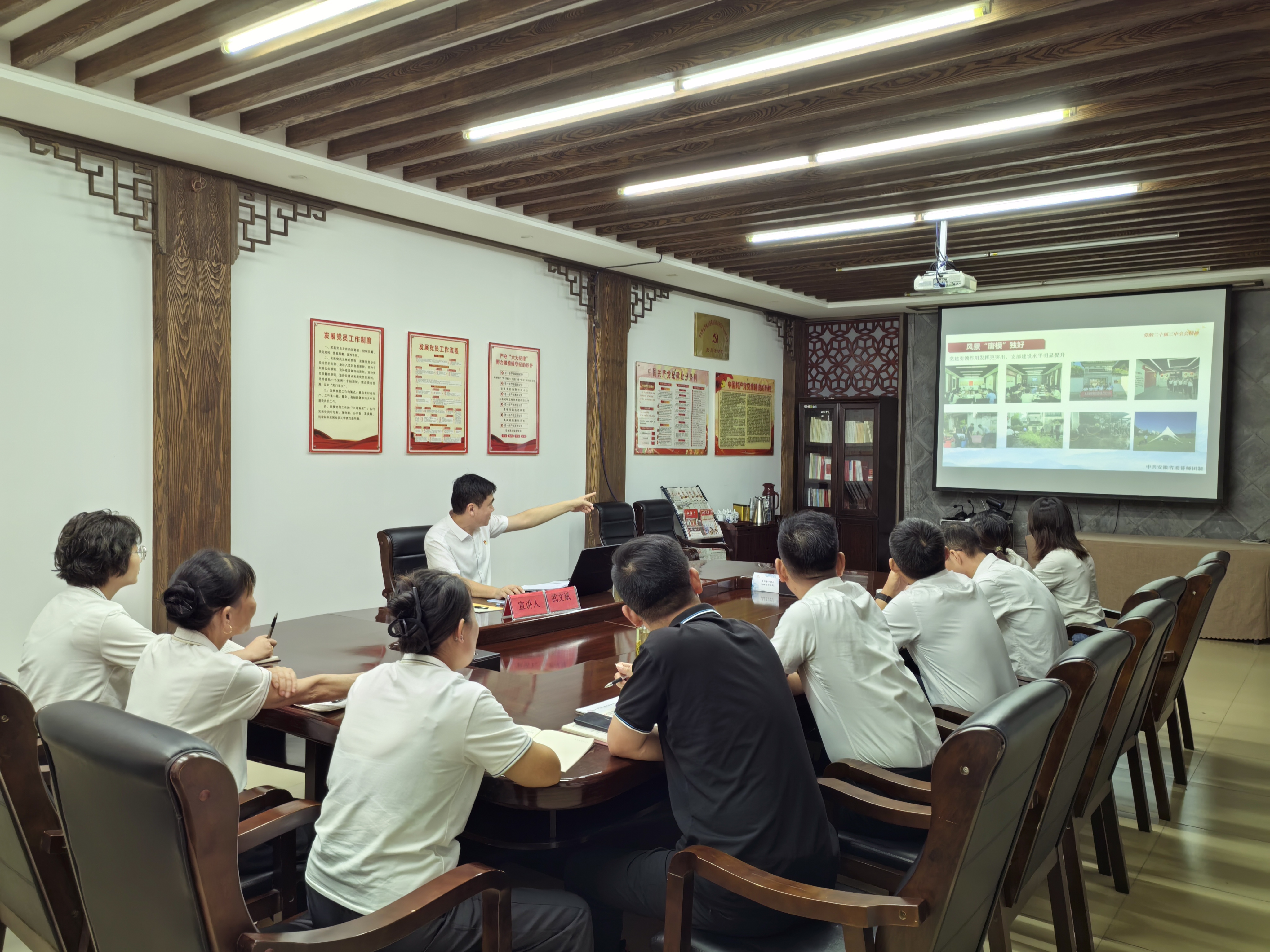9月9日,省旅游集团党委副书记、工会主席、职工董事武文斌赴唐模旅游公司宣讲党的二十届三中全会精神。唐模旅游公司党支部副书记、副总经理(主持工作)戴斌,各部门管理人员及全体党员参会。