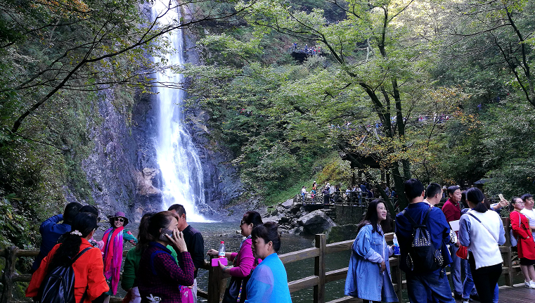 2017国庆期间, 8天的超长假期遭遇了连续六天的绵绵秋雨,天堂寨旅游市场依然火爆。截止8日中午12时,总共接待入园游客17.81万人次,实现旅游综合收入近2亿元,天堂寨发展旅游精准扶贫取得丰硕成果。