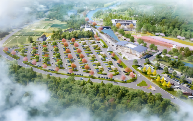 图1:生态停车场及游客服务中心鸟瞰效果图