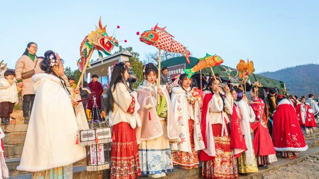 天堂寨景区在延续“寨里欢喜过大年”主题活动基础上,创新打造特色体验,跨年许愿、送春联、土猪宴、机甲巡游等特色项目,成功吸引来自不同国家的游客体验中国传统文化,春节假期前三天接待量同比激增 73.06%,实现传统文化IP的年轻化、国际化破圈传播。