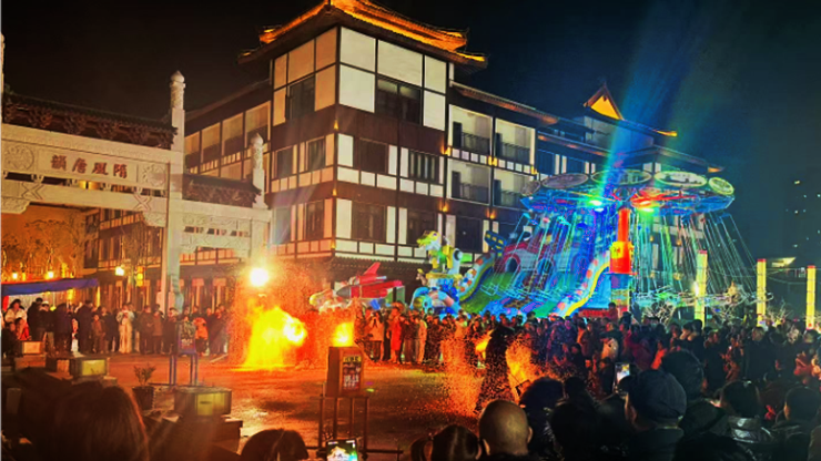 打铁花、火壶表演、传统舞狮、年味集市点燃隋唐运河古镇景区夜经济,非遗文化火爆出圈?;幢笔捉旆且爬献趾挪├阑?月定档隋唐运河古镇景区,着力打造下一个“网红打卡点”。