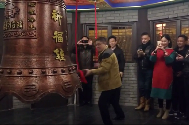 12月31日,在熙攘热闹中时间接近零点,游客齐聚古镇元辰殿前进行跨年倒数,伴随着元辰殿内祈福钟的沉稳敲响,数万游客在古镇街区送走了2017,迎来了2018。