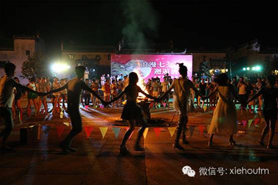 农历七月初七,是中国的情人节,在这充满浪漫气息的仲夏之夜,唐模景区在唐模法国家庭旅馆七天井广场组织了以 “浪漫七夕  邂逅唐?!蔽魈獾捏艋鹜砘幔醋曰粕绞懈鞔舐眯猩?、黄山市户外团体、自由行散客、入住家庭旅馆客人、集团公司的青年职工共600多人参加了这次活动,共同度过了一个浪漫激情的“七夕”情人节。
