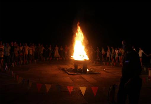 浪漫和激情是当天晚上活动的主题。七天井广场中央,一堆篝火熊熊燃烧,晚会在《欢迎你到唐模来》的歌声中拉开序幕,既有专业摇滚歌手的激情献演,也有普通游客的即兴表演,更有精心设计的游戏和奖品。精彩的节目、浪漫的游戏以及丰厚的奖品,给游客带来一次次视觉的冲击和心灵的放松,给晚会现场掀起一个又一个高潮。21:30,晚会在换乐的兔子舞中结束,许多游客再到檀干溪放河灯,祈求家人幸福、平安。