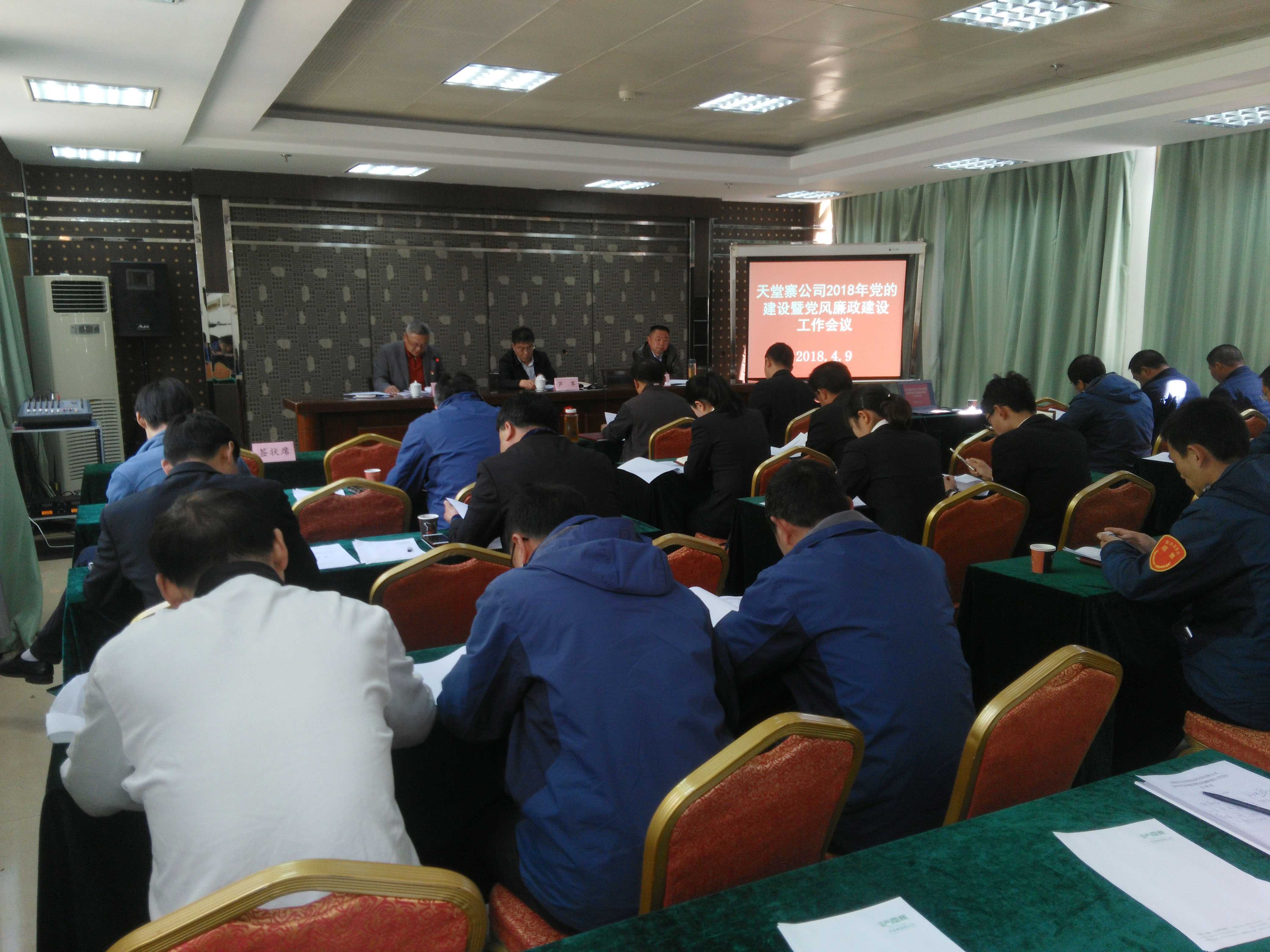 2018年4月9日上午,天堂寨旅游发展有限公司在山庄分公司会议室组织召开2018年党的建设暨党风廉政建设工作会议。公司领导班子成员,党支部书记,全体党员,分公司班子成员,公司本部各部门副职及以上管理人员,公司工会负责人,共青团委负责人参加会议?;嵋橛晒镜匙苤?、副总经理吴力同志主持。