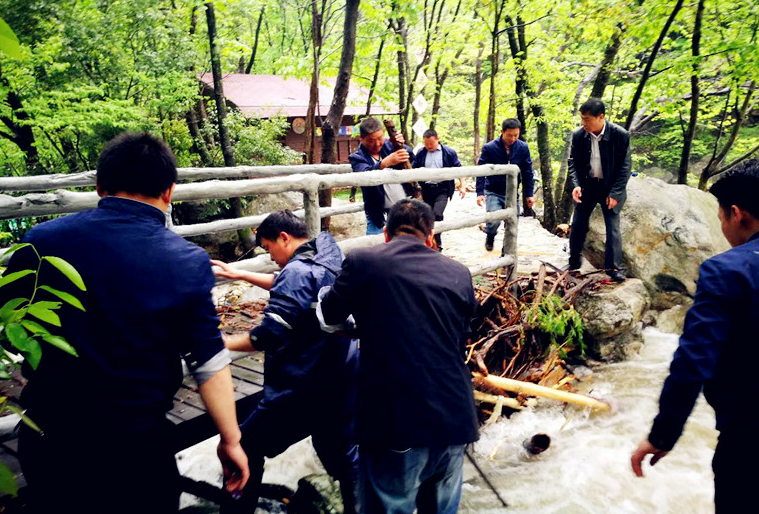 面对突如其来的自然灾害,在公司的统一指挥调度下,从早上6点多开始,景区工作人员便赶往景区旅游公路和景区主要节点查看水情和受灾情况,分头对受到损坏和堵塞的道路实施清理和抢险,经过一天的紧急抢修和应急处理,景区大门口至虎行地路段恢复畅通,景区各节点的清理工作全部结束,确保了主景区(瀑布群)、白马大峡谷于23日全面开放。