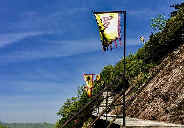 拾级登高,此时放眼望去,百家姓的旗帜沿着蜿蜒的栈道,一面面的向远处、高处绵延而去。或许你的姓,在栈道的上头,吸引不断抬眼去找寻,去追赶,在不断攀爬寻找的途中,给了你目标与动力。