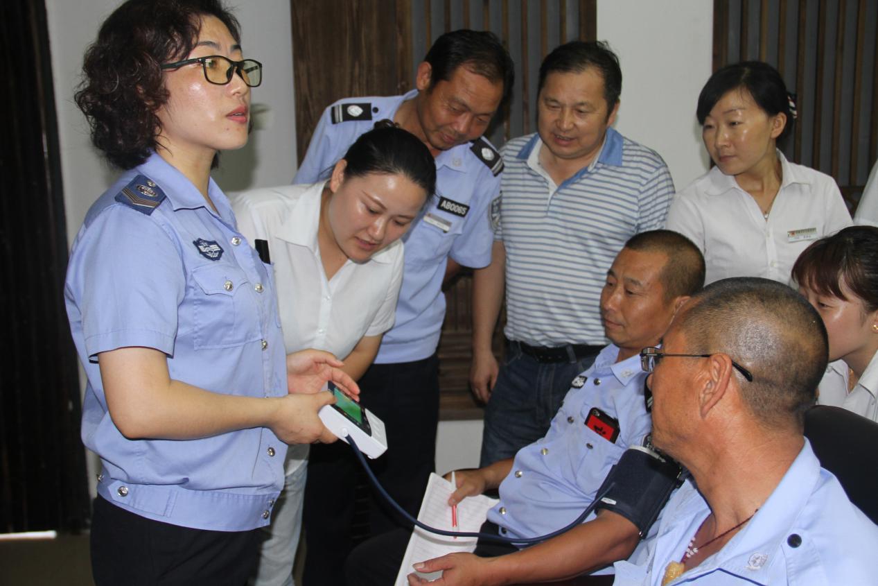 图2.培训老师为唐模公司员工测量血压