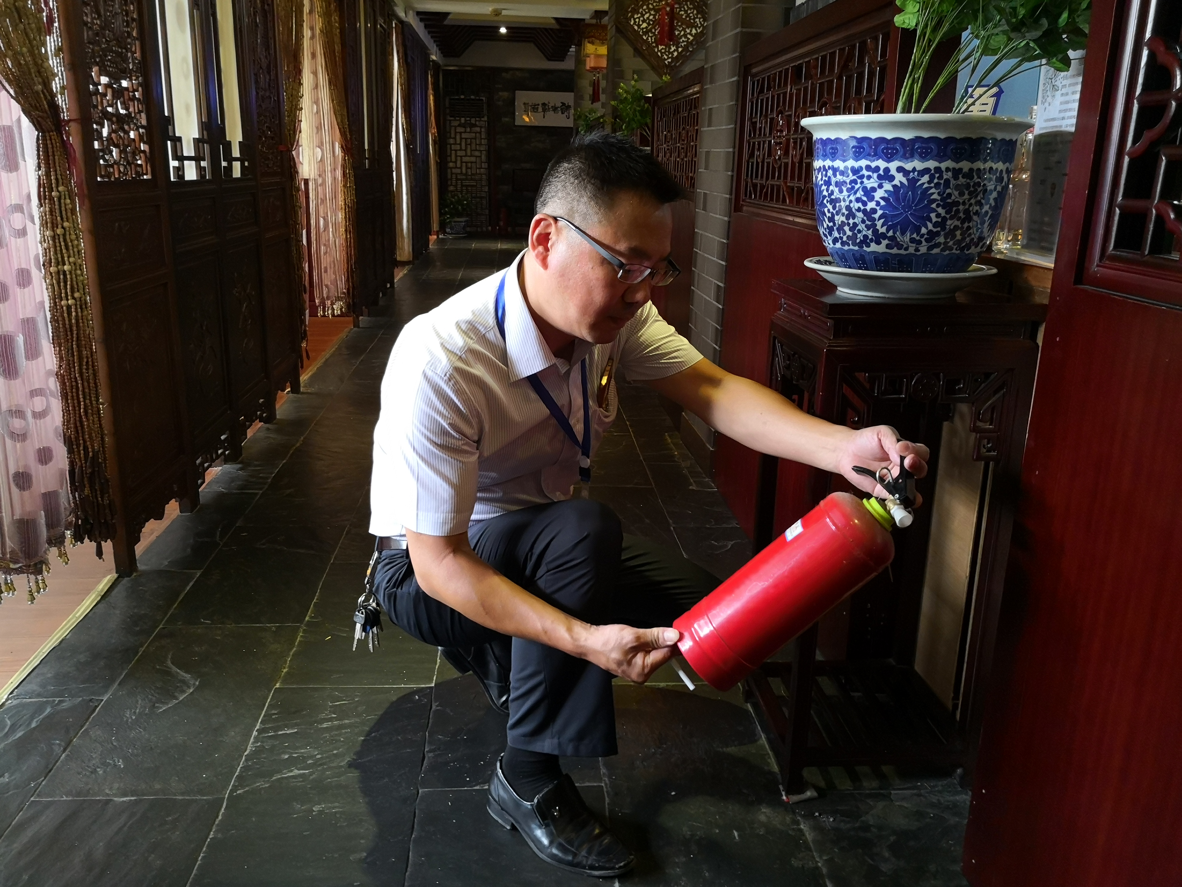 这次活动目的一是对两个月前进行的整改意见落实情况进行跟踪检查,二是对高温暑期餐饮企业厨房、后堂的消防安全进行重点专项检查。检查过程中发现大部分企业对上次检查整改要求积极有效落实到位,经营区域过期灭火器得到更换,同时对部分企业灭火器摆放不规范进行了纠正。