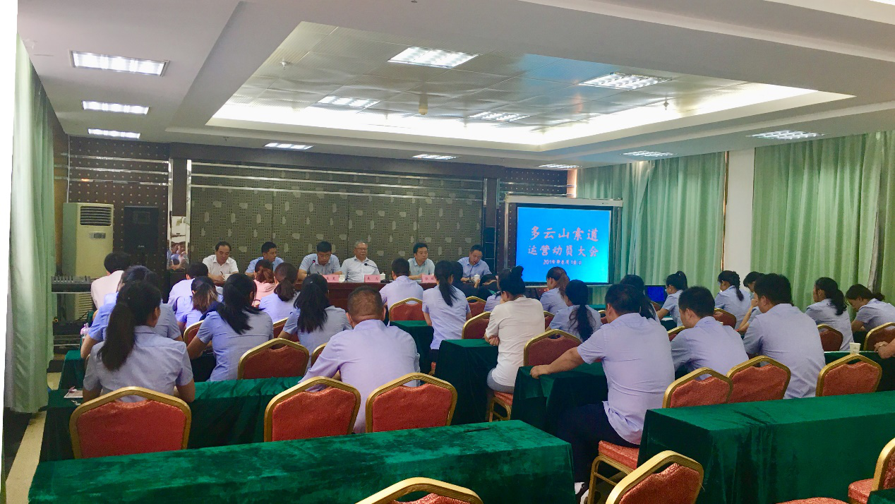 天堂寨多云山索道改造项目已进入尾声,即将进入试运营阶段,为了使索道新老员工对标更高要求、提供更好服务、营造更优环境、激发更多激情,以积极的态度和饱满的精神投入到索道工作中,8月18日上午,天堂寨旅游发展有限公司召开了多云山索道运营动员会。天堂寨旅游发展公司党总支副书记吴力,天堂寨旅游发展公司党总支委员、副总经理吴昊,天堂寨旅游发展公司副总经理张斌,天堂寨旅游发展公司党总支委员、索道站长袁道良,索道副站长张耀煌及索道全体员工参加了会议,会议由袁道良主持。