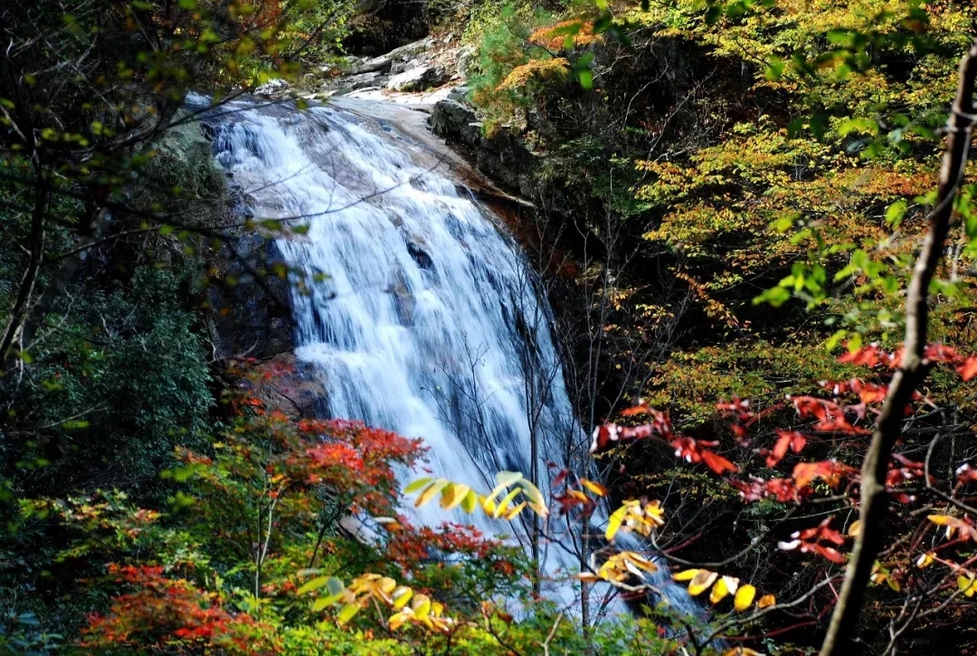 秋色醉人,天堂寨为最。每到秋天,如火如荼的红色耀眼的金色,清澈见底的蓝色每一种颜色的汇集把天堂寨变成了一个五彩斑斓之地