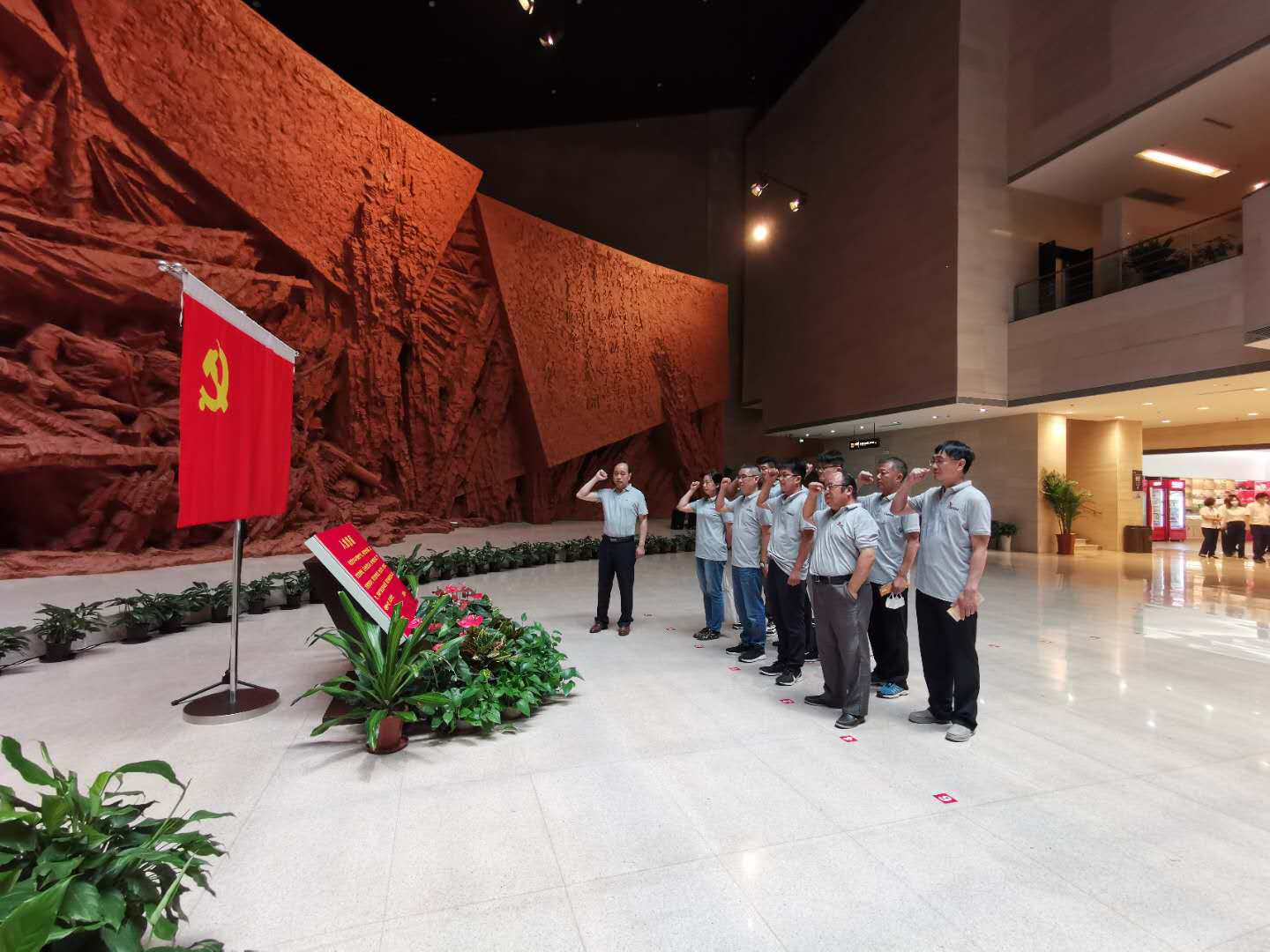 在纪念馆内,牛文生书记带领全体党员重温入党誓词,面对党旗再一次庄重地作出了自己对党的承诺,牢记共产党员的政治责任和历史使命,时刻以入党誓词为镜,不忘入党初心,永葆共产党员的政治本色。