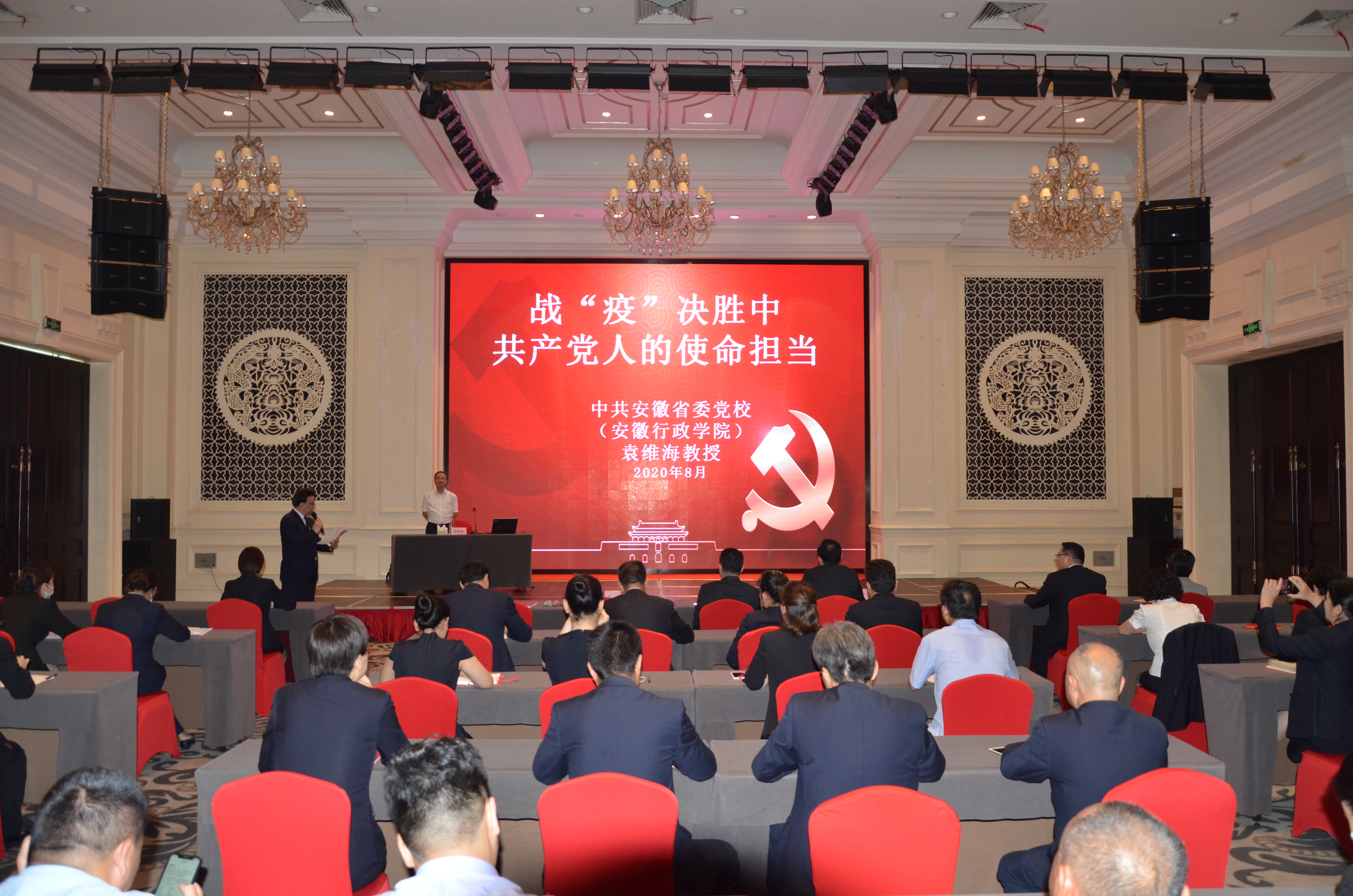 此次培训特邀了中共安徽省委党校(安徽行政学院)副校(院)长、教授、管理学博士袁维海到店,以《战“役”决胜中国共产党人的使命担当》为课题,为大家生动地讲述了一堂专题培训课。