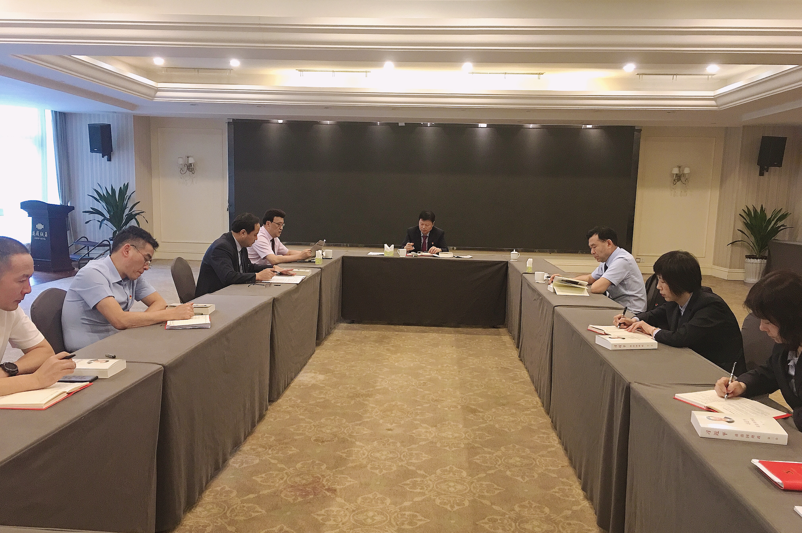 8月27日,安徽饭店党委理论学习中心组召开由各支部书记参加的扩大学习会议?;嵘?,安徽饭店集体学习了习近平总书记考察安徽重要讲话和在扎实推进长三角一体化座谈会上的重要讲话精神?;岷?,饭店党委对全面学习贯彻习近平总书记考察安徽重要讲话精神进行了动员部署,对中心组学习研讨提出了要求。