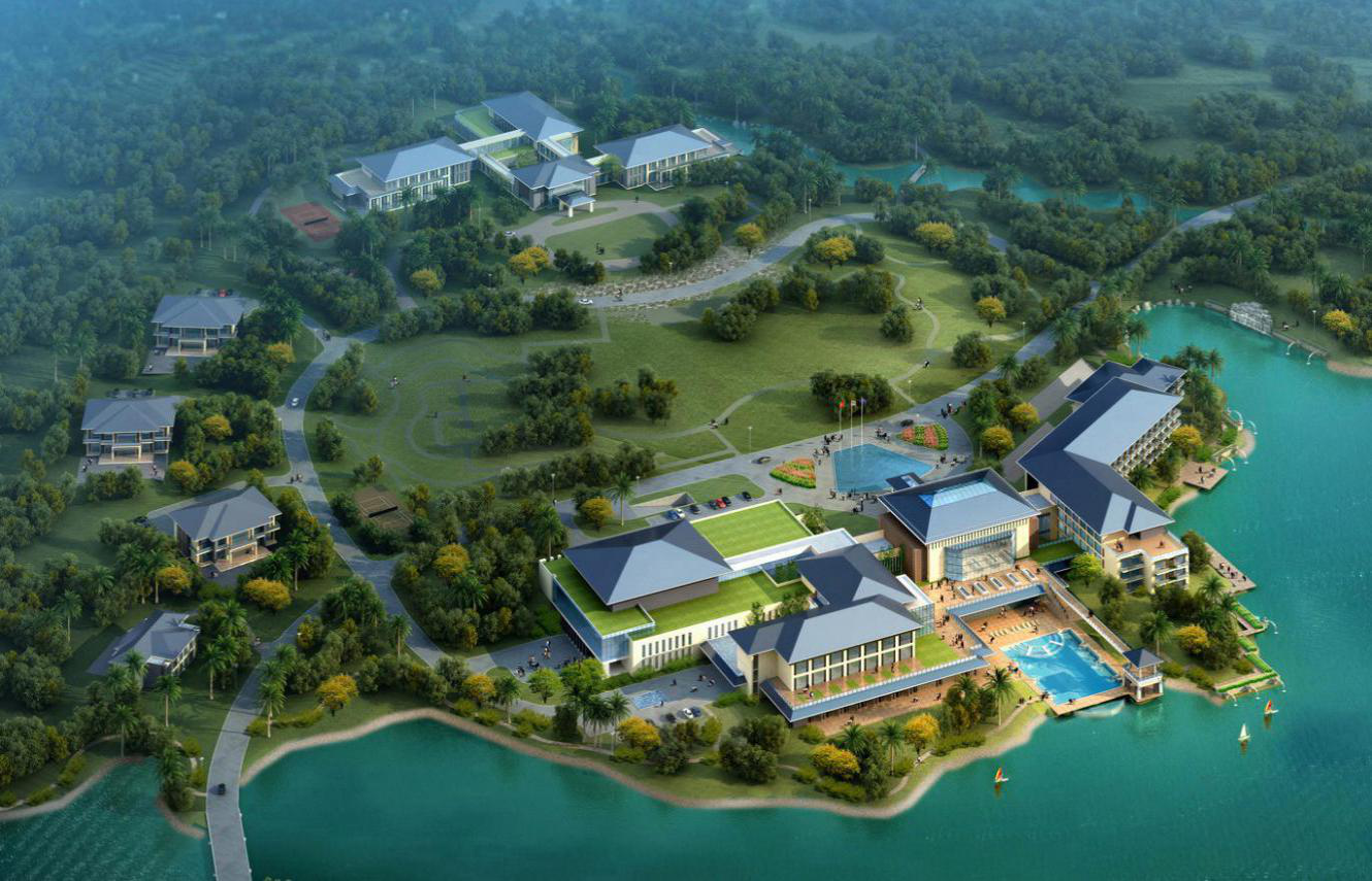 淮南洞山宾馆易地新建项目位于舜耕山风景区内,紧邻山南新区管委会,项目占地150.62亩,建筑面积5.1万平方米,由5栋单体建筑构成,分别为一栋综合楼、一栋大贵宾楼、三栋小贵宾楼,共包括260余间客房,1200个餐位及配套的会议、健身休闲等设施,可用于住宿、餐饮、商务、休闲于一体的度假及会议场所。项目环境幽静,气候宜人,山水及生态景观俱佳。
