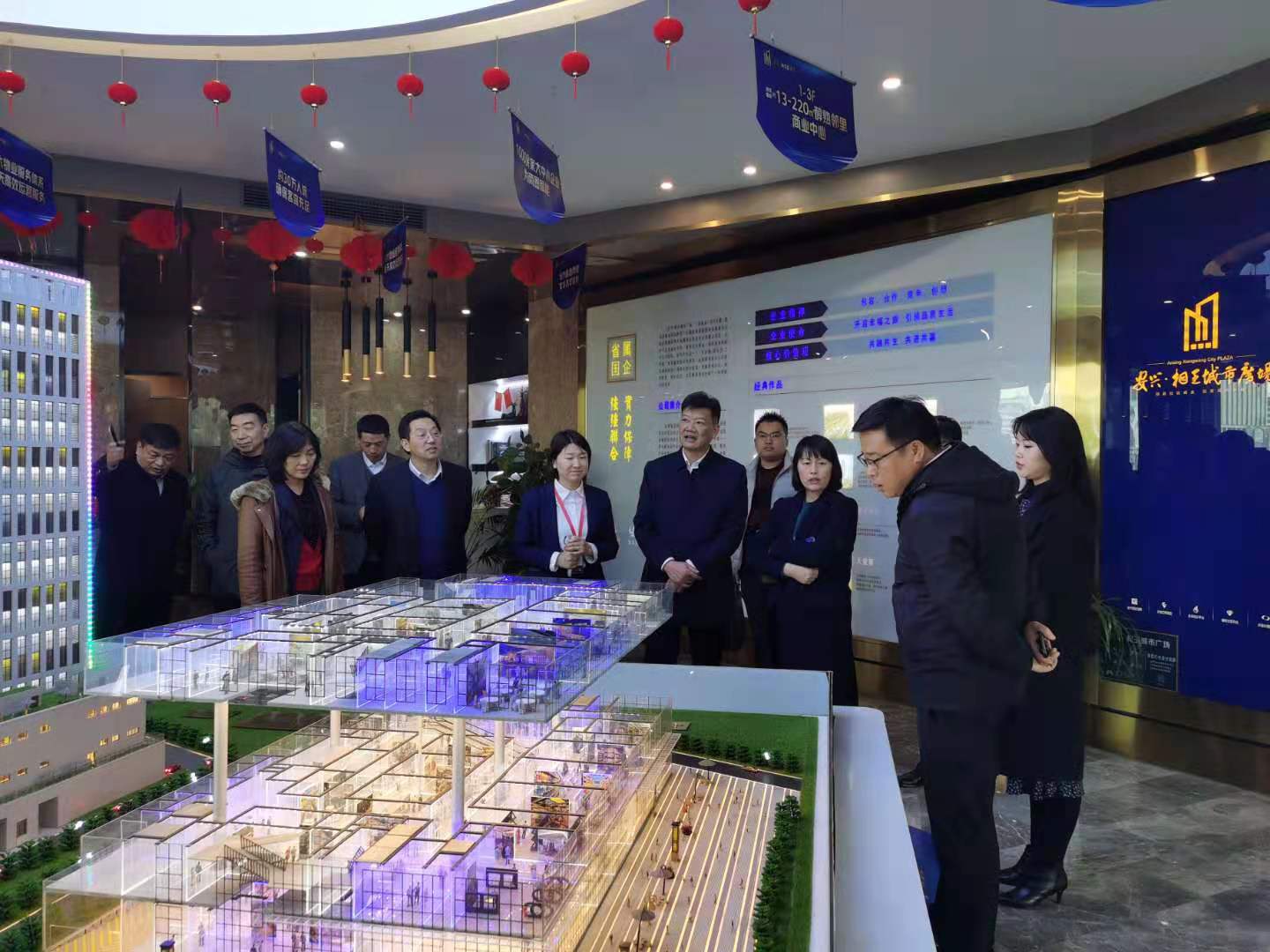 下午,邱军总经理一行首先前往合肥相王广场项目施工现场和营销展示中心,了解察看项目建设进度、安全生产、投融资及销售招商情况,并召开座谈会认真听取项目主要负责同志汇报工作,对加强项目建设、成本管控、安全管理及攻克销售中存在的难题提出指导性意见。