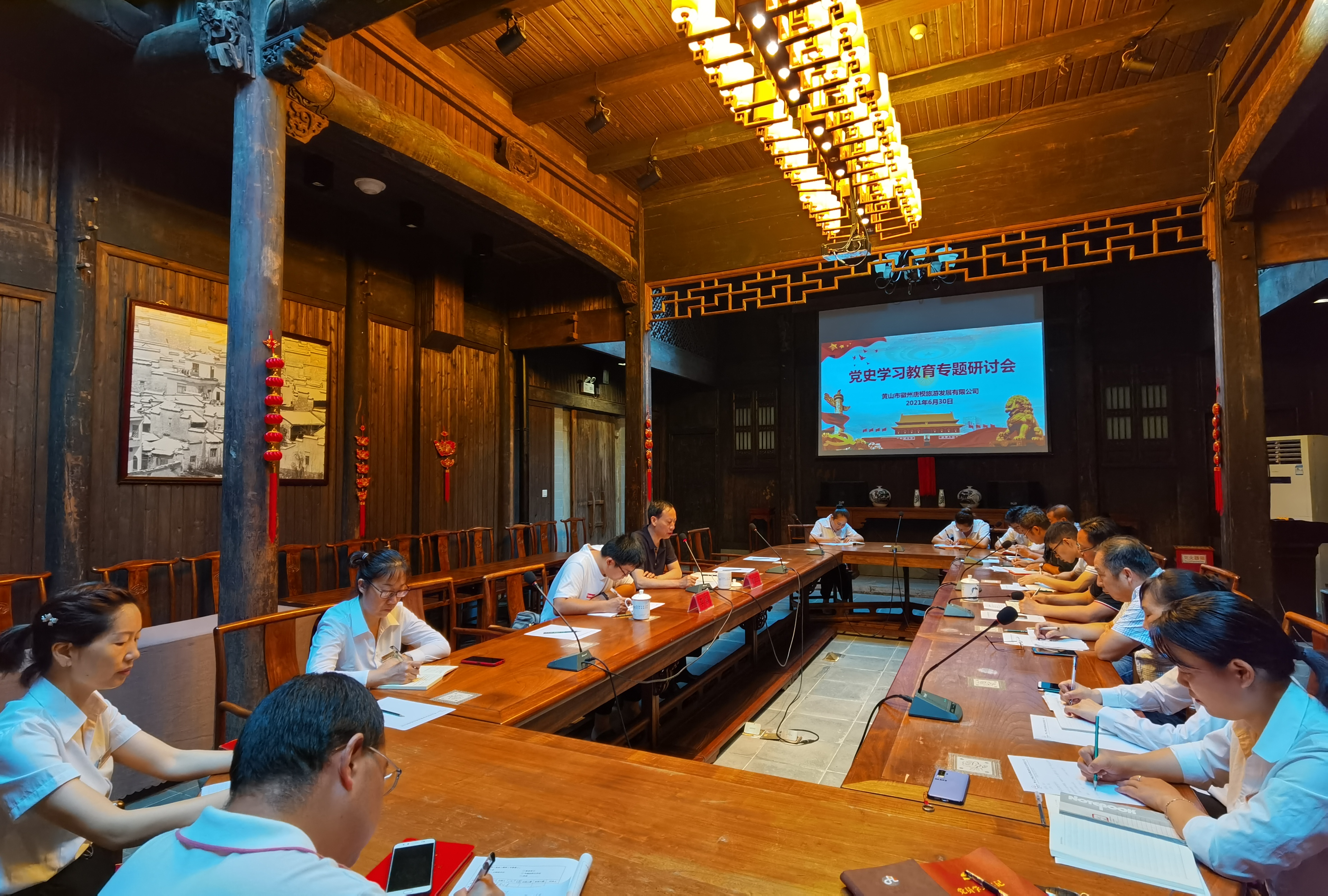 最后唐模公司书记、总经理汪杰锋表态,公司将把党史学习教育贯穿 2021 年全年,紧扣党史学习教育阶段要求、步骤安排、必学内容、规定动作,严把标准关、质量关,开展主题突出、特色鲜明、形式多样的学习活动,确保党史学习教育全年不断线、持续往深走。同时,从中国百年党史中汲取力量和智慧,时刻把握发展脉搏,结合公司实际,围绕安全生产、经营管理等中心工作,办实事、开新局,推动公司高质量发展。