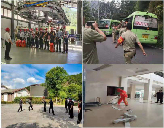 三是勤演练,提升应急处置能力。在安全生产月活动中,天堂寨公司先后组织开展了索道高空救援、景区道路交通堵塞、公共场所反暴力袭击、宾馆酒店消防疏散等系列演练活动。通过场景模拟演练,让员工感受突发应急事件时的真实氛围,演练正确的处置程序,检验员工对突发安全事故的反应速度及应急处置能力,及时总结经验和不足,细化完善预案,真正将培训成果转化为实用技能,提高景区应急处置能力。