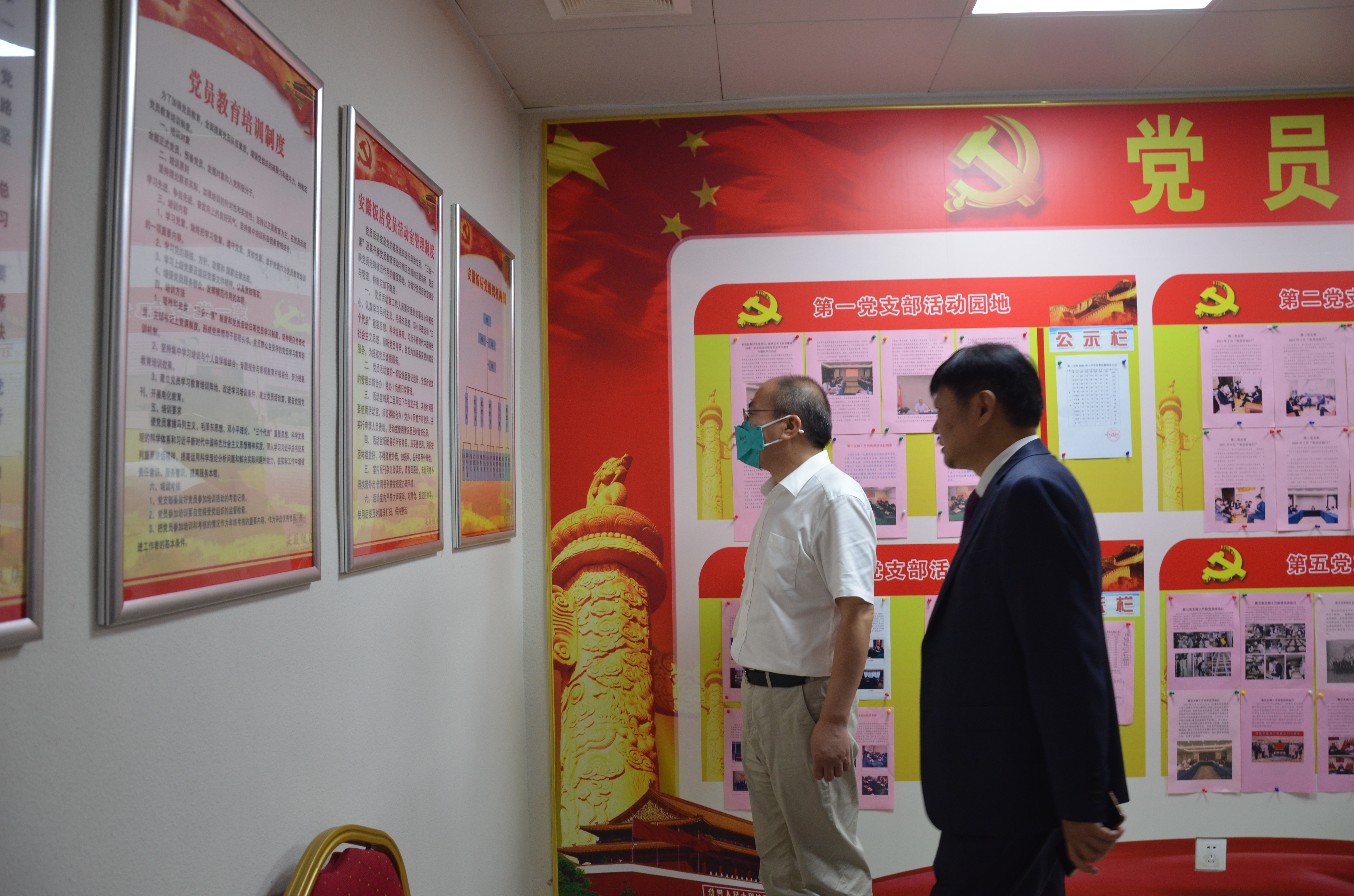 郑承乾书记一行还深入安徽饭店餐饮、客房、会议等经营场所,实地了解了饭店的经营服务功能和生产经营情况;参观了荣誉室、职工阅览室、党员活动室、企业文化墙和宣传橱窗,对饭店的企业文化建设给予较好评价。