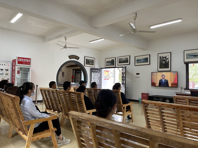 与此同时,桃花潭景区同步组织10余名党员及员工在游客接待大厅集中收听收看了本次纪念大会的现场直播。其他在岗的员工在不影响接待工作的情况下,也利用手机等媒体自行进行了收听收看。
