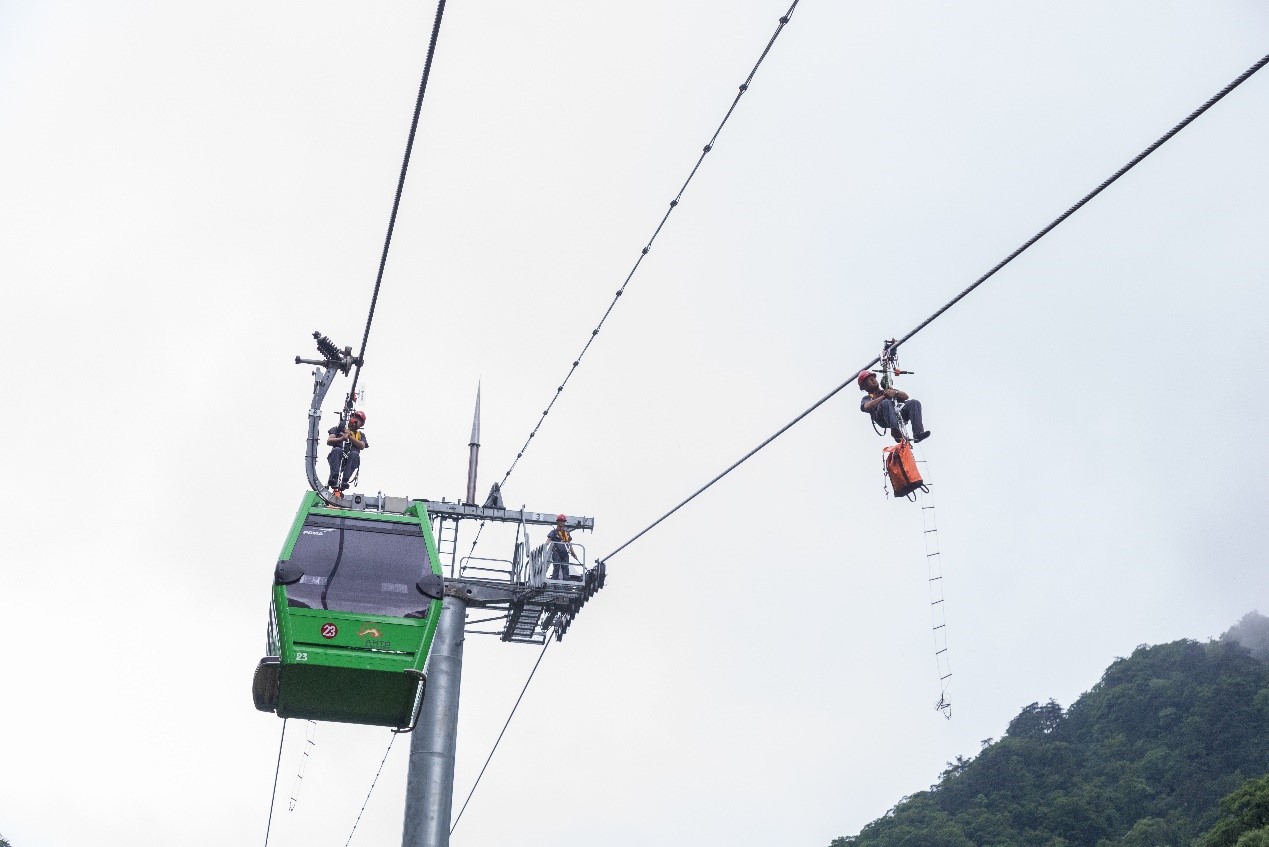 天堂寨风景区大别山索道成功开展安全突发事件应急救援演练
