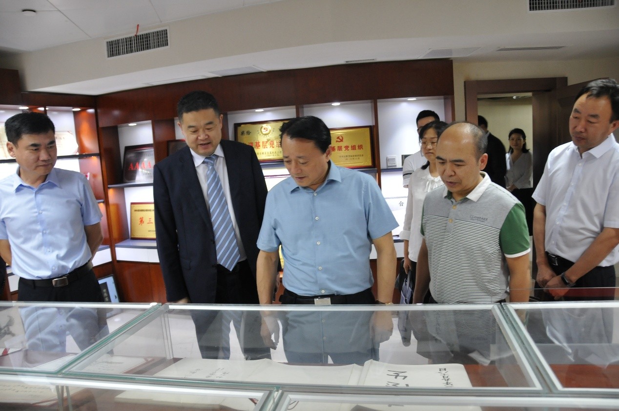 调研组一行听取了集团所属安徽饭店的企业介绍,实地参观了安徽饭店的荣誉室、党员活动室、职工之家和企业文化墙。