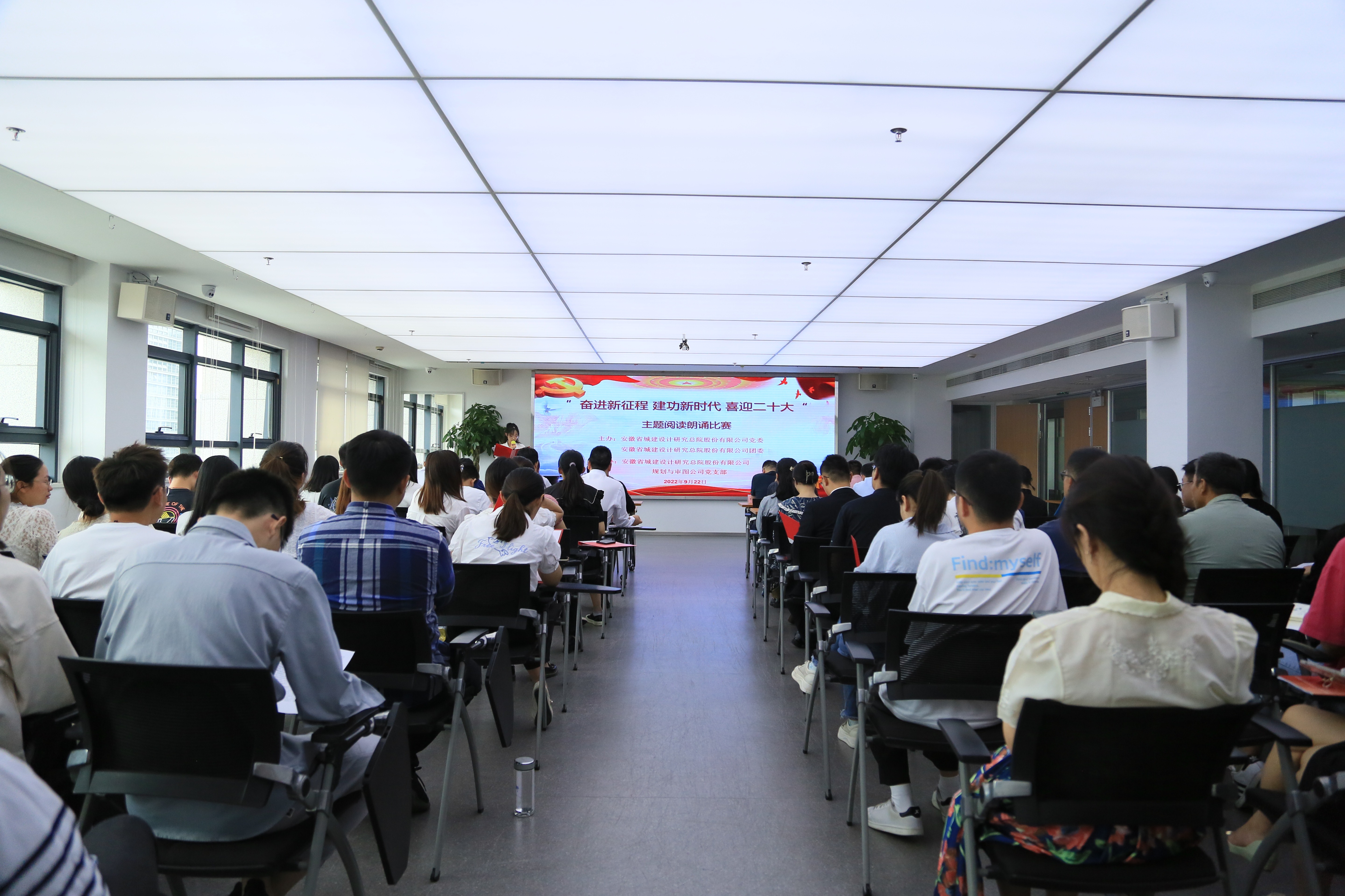 为展现总院党员干部和职工群众坚定不移听党话、感党恩、跟党走,进一步振奋精神、出力奋发、勇毅前进,9月22日,由总院党委、总院团委主办,规划与审图公司党支部承办的“奋进新征程 建功新时代 喜迎二十大”主题阅读朗诵比赛。总院党委副书记、总经理吴东彪出席活动并致开幕词,总院各级党组织共计90余人参加。