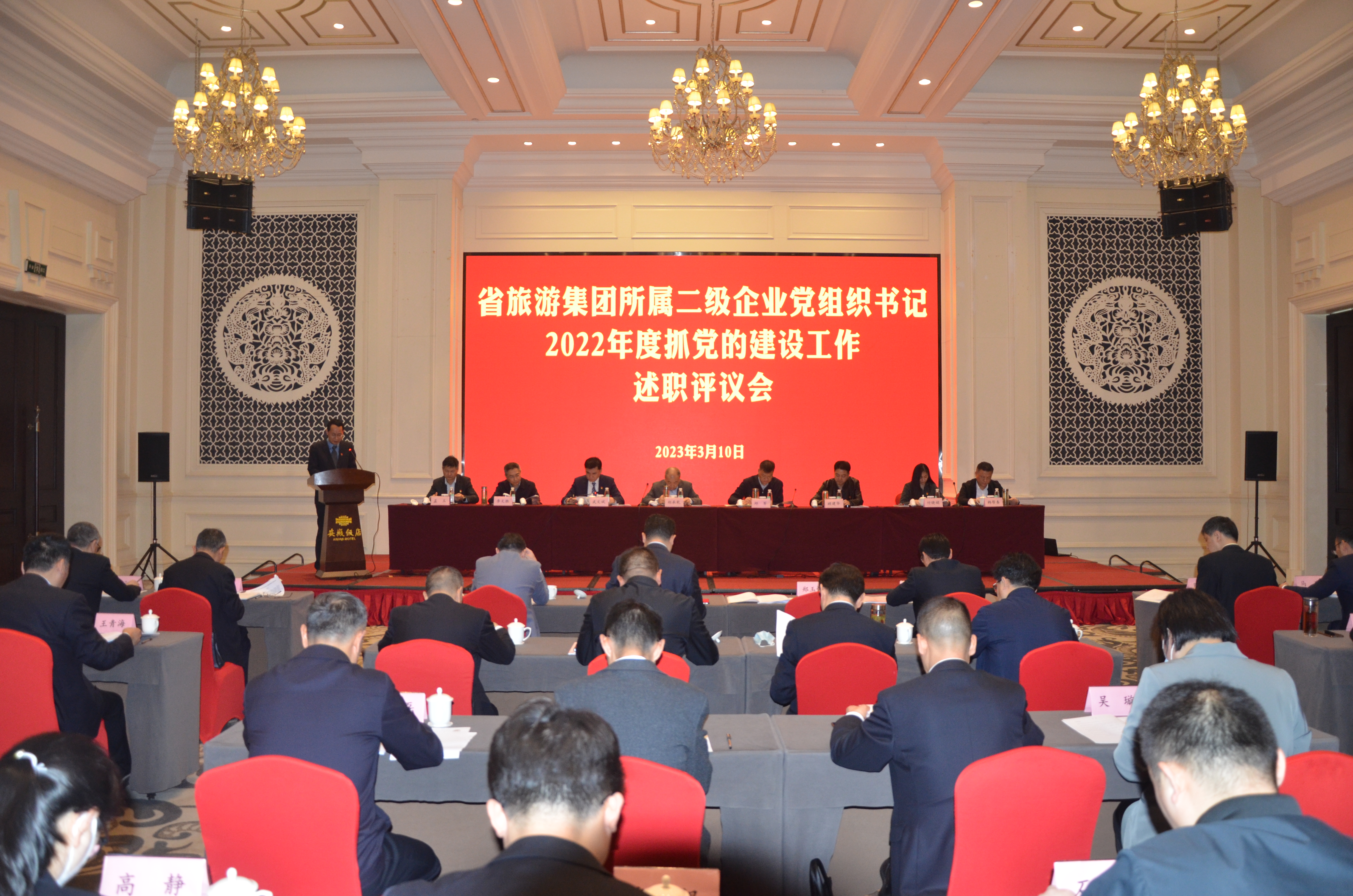 3月10日上午,省旅游集团党委召开所属二级企业党组织书记2022年度抓党的建设工作述职评议会议,集团党委委员及领导班子成员、集团工会、团委负责人,集团所属二级企业党组织主要负责人、集团公司各部门主要负责人及集团所属二级企业党群工作部门负责人、党员代表等参加会议。集团党委副书记、工会主席武文斌主持会议。