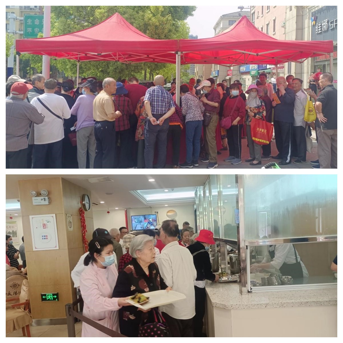 活动现场发放60岁以上老人优惠券,当天前来就餐的老人络绎不绝,通过老年人助餐行动为更多的社区服务、实现家门口、十分钟就餐圈。