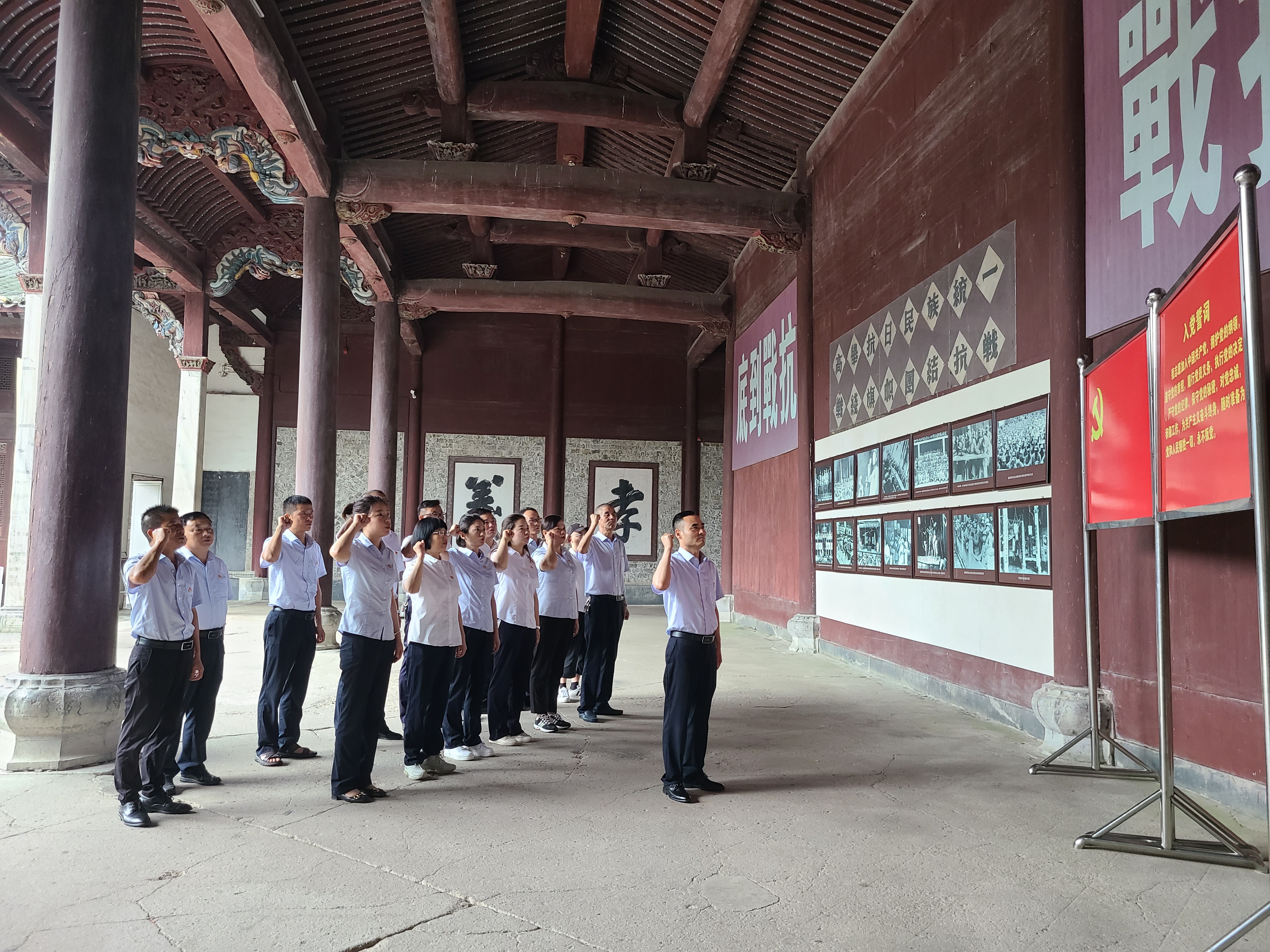 随后,在当年周恩来同志为新四军官兵作报告的大会堂内,由马政同志领誓,全体党员庄严地举起右手,面对鲜红的党旗,重温入党誓词?;疃崾螅蠹曳追妆硎?,通过此次主题党日活动,为公司党支部全体党员上了一堂生动的党课,也更加坚定了广大党员为共产主义事业奋斗终身的信念,要继承铭记新四军的爱国主义精神和不朽功绩,发扬党的优良革命传统,努力在以学铸魂、以学增智、以学正风、以学促干方面取得实实在在的成效,不断地为推进企业的高质量发展发挥党员的先锋模范作用。